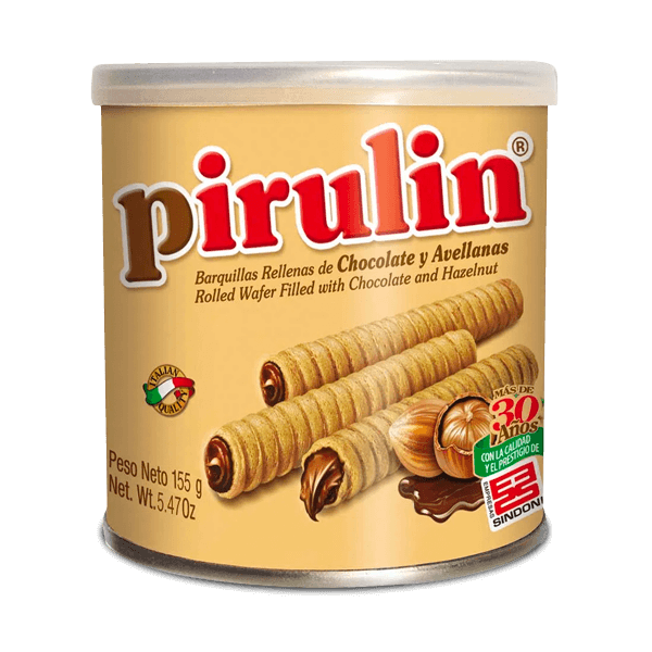 Barquillas Pirulin están rellenas de chocolate y avellanas. País: Venezuela.