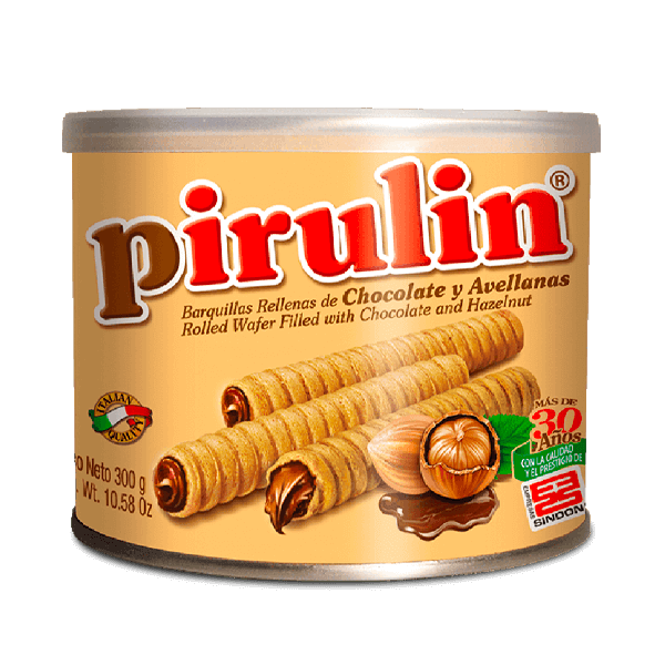 Barquillas Pirulin son barquillas rellenas de chocolate y avellanas. País: Venezuela.