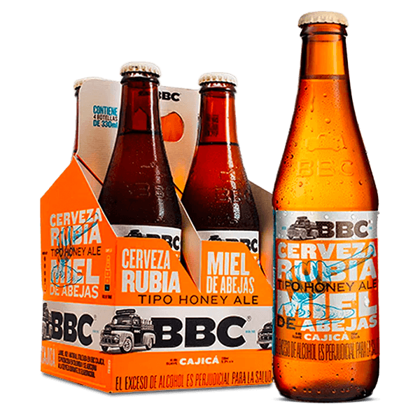 Bbc Cajicá miel es una cerveza rubia, con una generosa adición de miel de abejas y se adiciona a la cerveza durante su elaboración, suave y refrescante. Perfectamente equilibrada en su sabor, ideal para acompañar carnes blancas, comidas con nueces y postres dulces.