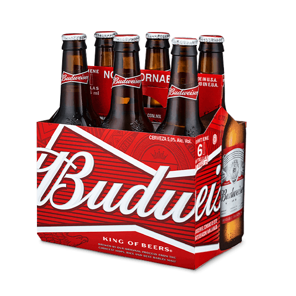 La cerveza Budweiser viene en botella de six pack de 250 ml, es tipo lager americana es añejada en chips de madera por 21 días, lo que da como resultado un sabor perfectamente equilibrado y fresco. Contiene arroz para un sabor ligero y crujiente, malta premium de cebada y los mejores lúpulos.
