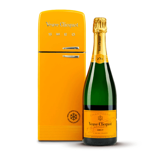 Champagne Veuve Clicquot Brut Yellow es de Francia. La presentación de la botella es de 750 ml. Mezcla un 30% a 45% de vinos de reserva con uvas de hasta 50 a 60 crus diferentes. El tipo de uva es 50% a 55% Pinot Noir, 15% a 20% Meunier y 28% a 33% Chardonnay.