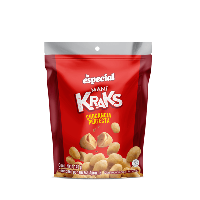 Pasabocas La Especial Kraks es un paquete de maní salado Kraks recubierto y horneado. País: Colombia