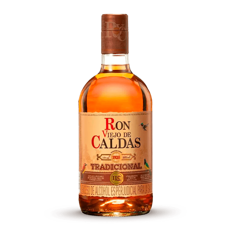 El ron viejo de Caldas tradicional viene en botella por 750 ML producido de la caña de azúcar y añejado en barriles de roble para que consiga su sabor. Contiene un sabor dulce frutal, madera bajo y amargo. Almacenar en lugares ventilados.