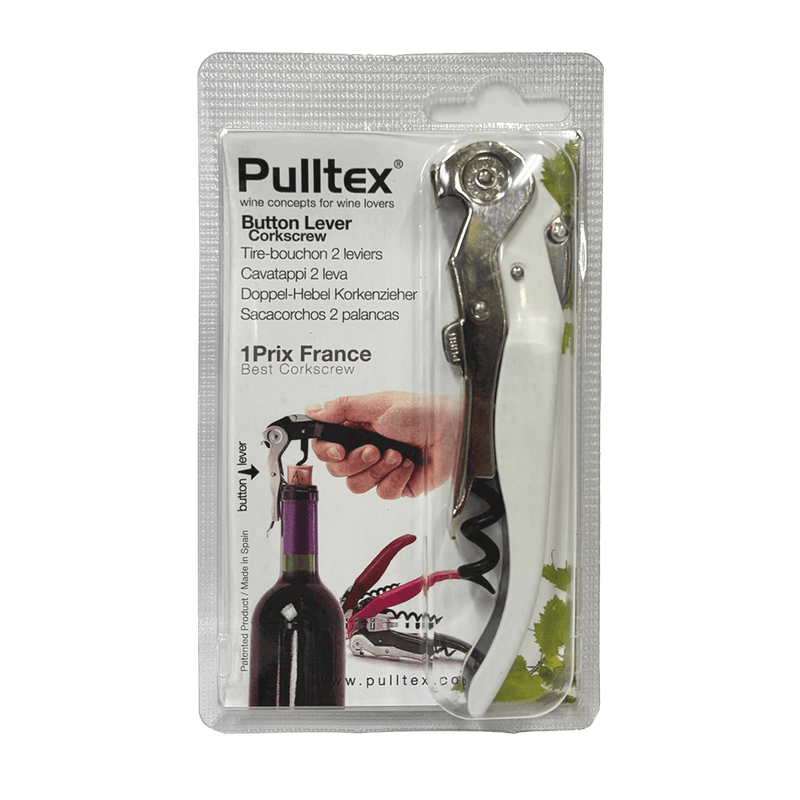 Sacacorchos Clickcut Pulltex, su sistema de doble palanca retráctil permite extraer sin esfuerzo los tapones en dos tiempos, sin romperlos ni dañarlos, de forma totalmente vertical. Total eficacia demostrada para todo tipo de tapones, incluso los más largos. Sistema de doble palanca retráctil patentado. Palanca retráctil antideslizante. País: España