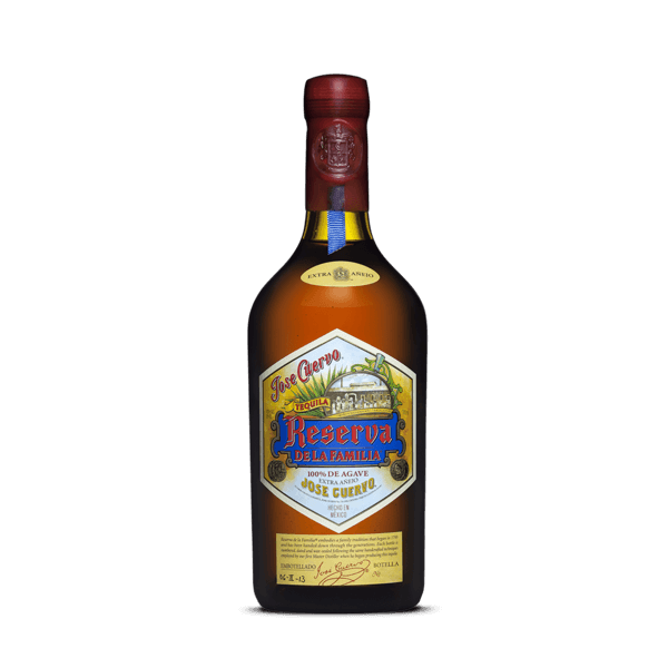 El Jose Cuervo Reserva de la Familia es un tequila reserva extrañejo tiene 100% agave con barricas de roble americano y francés con promedio de 3 años de añejamiento, previo a su envasado pasa a filtración en frío para darle mayor grado de pureza. Considerado el coñac de los tequilas.