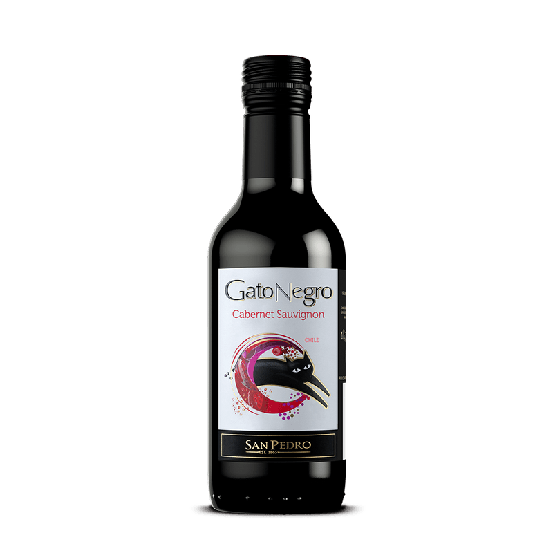 El vino tinto Gato Negro es un vino de Chile varietal que viene en piba de 187 ML. Su tipo de uva es 85% de Cabernet Sauvignon y 15% Syrah.