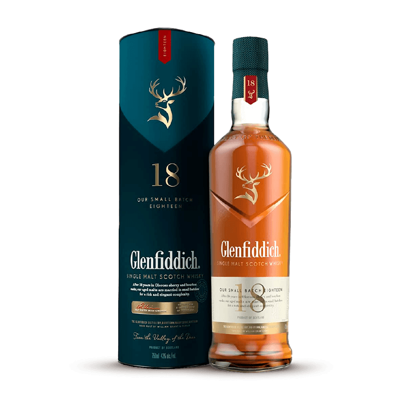 El Glenfiddich 18 años es un whisky excepcionalmente suave, generoso y con toques de roble. Whiskey Glenfiddich ha sido juzgado como el mejor whisky escocés de 18 años de añejamiento en el mundo.