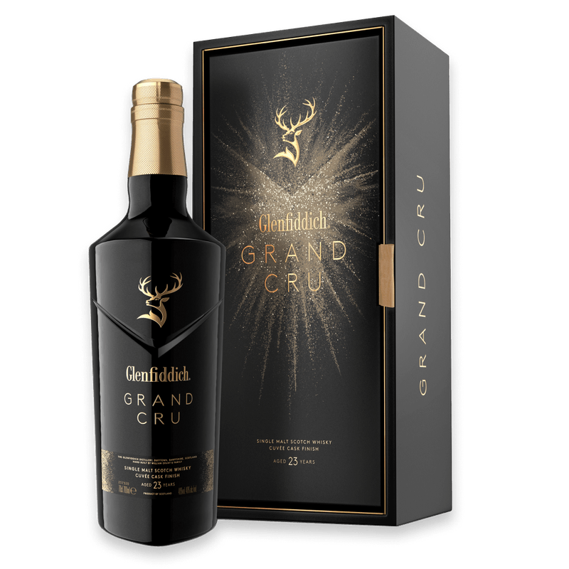 El Whisky Glenfiddich Grand Cru es una presentación de lujo, madurada durante 23 años en barricas americanas y europeas, terminada durante 6 meses en barricas de Cuvée Francés. País: Escocia.