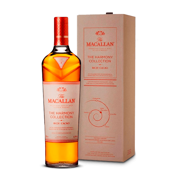El whisky Macallan Harmony es de malta única excepcionalmente rico que se caracteriza por su profundo perfil de chocolate oscuro. Su presentación es de botella de 700 ml.